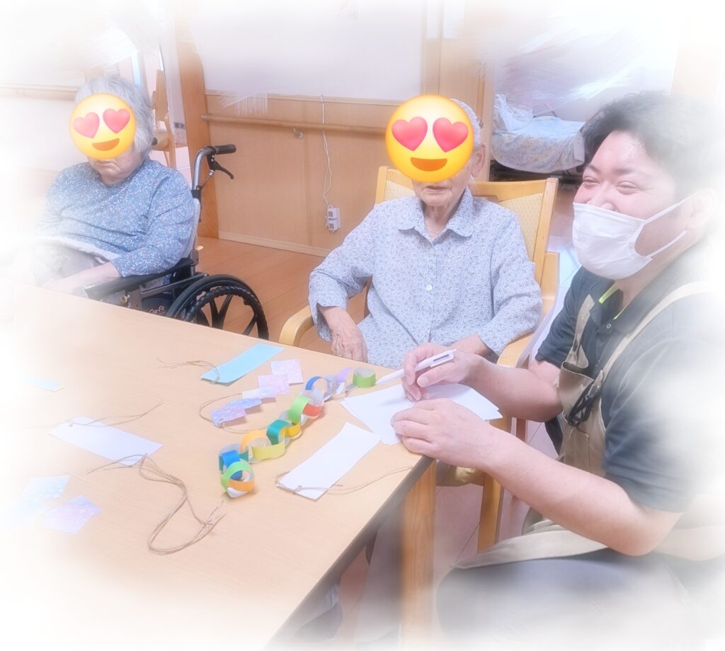 七夕飾りを皆さんで作ってみました\(^^)/💕