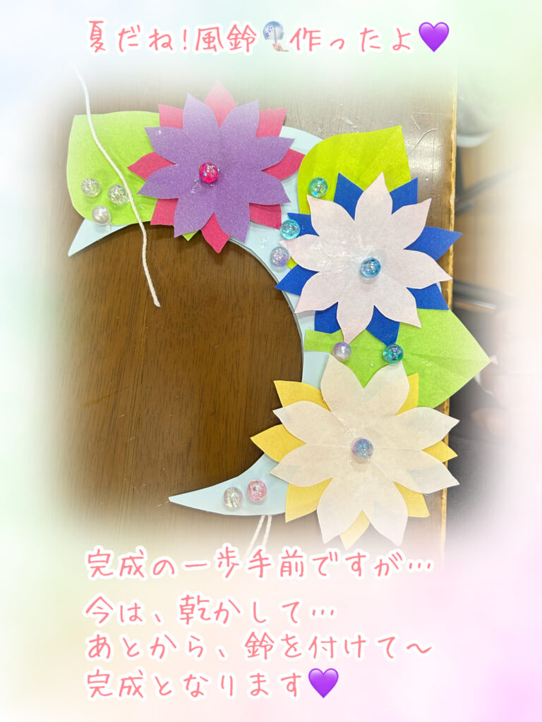 そして、午後には、スタッフのアイデアにて、皆様と一緒に、手作り風鈴🎐を、作りました💜